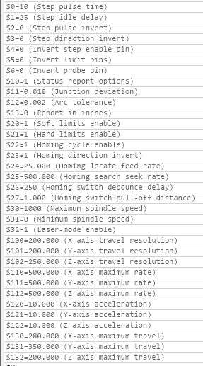 @mtthamann也许是这样:你已经反转了你的 X 轴归位,但不是 Y。尝试像我之前所说的那样推断你的 Y 方向,并为你的归位序列反转它。所以 $3=2 反转 Y 方向,$23=3 反转 X 和 Y 的归位方向。你的机器“认为”它在右前角。 |