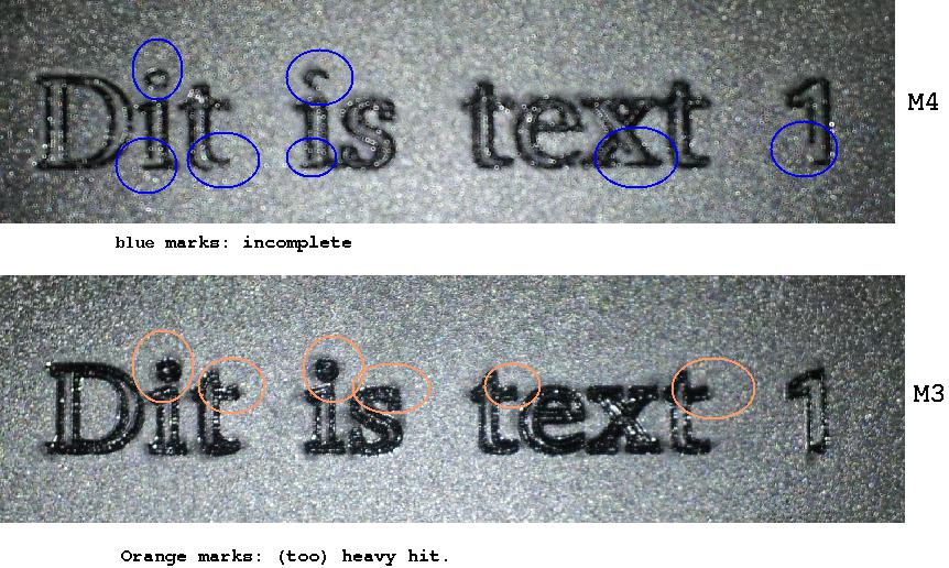 有什么我可以进一步测试为什么会发生这种情况吗?附件是一张 jpeg,其中标记了差异,它是三行中最小的一行,“D”的高度约为 8 毫米。使用 M4 代码看起来非常好,但激光在某些时候打开得太晚了。