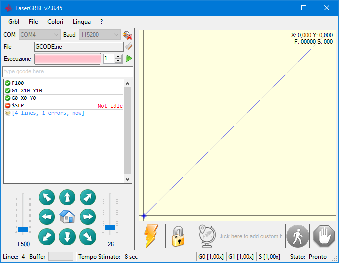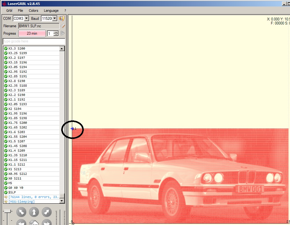 但是,当我在 G0 X0 Y0 之后添加 $SLP 命令时,G0 X0 Y0 将被忽略,激光正好停在它燃烧的最后一行的末尾,然后进入休眠状态。