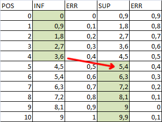 pensa a un righello e pensa che la tua macchina può fare passi solo da 0.9mm ma la macchina non può farli fisicamente, quindi andrà nella posizione approssimativamente più vicina。fino ad un certo punto la posizione più vicina sarà il multiplo inseriore di 0.9 ma ad un certo punto la posizione più vicina sarà il multiplo superiore。 在 quel momento invece un salto di 0.9 c’è un salto di 1.8 |