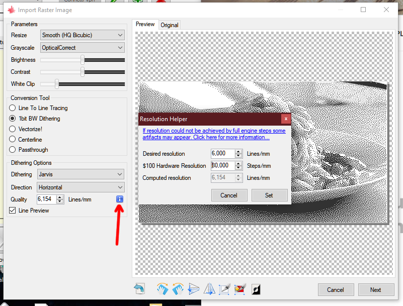 不,您需要使用您的雕刻师能够遵守的 DPI。 尝试 127 DPI |