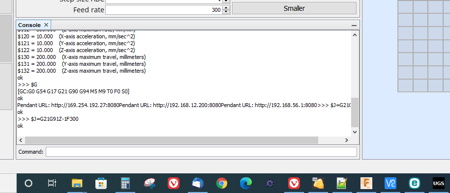 如果计算机在 LAN 上,UGS 内置吊坠将无法通过 wifi 连接的手机运行 #1802 关闭 iggy 打开了这个问题 2022 年 2 月 9 日 · 2 条评论 关闭 如果计算机在 LAN 上,UGS 内置吊坠将无法通过 wifi 连接的手机运行#1802 iggy 打开了这个问题 2022 年 2 月 9 日 · 2 条评论 注释 伊基 评论了 2022 年 2 月 9 日 版本 2.0.9 硬件/固件 GRBL 1.1 发生了什么 我无法通过电话访问内置吊坠。PC 在 LAN 上,在这种情况下,它可以在自己的浏览器中完美运行,但不能在连接 wifi 的手机上运行。我决定拔出 LAN 并将 PC 连接到 wifi,但挂件功能仍然无法在手机上使用。如果在 PC 上访问给定的 url 它仍然有效,但有故障(最初没有连接,但一段时间后它开始)。 如何重现 没有反应 操作系统 Win10 还要别的吗 每次都会发生。 作者 伊基 评论了 2022 年 2 月 9 日 它还发出 3 个不同的 IP 连接到: 挂件 URL: http://169.254.192.27:8080 挂件 URL:http: //192.168.12.200 :8080 挂件 URL:http : //192.168.56.1 : 8080 在桌面上检查 URL 时说没有连接: 合作者 布雷勒 评论了 2022 年 2 月 9 日 首先,您正在运行旧版本的 UGS,您可能应该升级。您没有运行您在问题中指定的版本 2.0.9。 三个 IP 地址意味着您的计算机上安装了三个不同的 LAN 适配器。这应该如何工作完全取决于您如何设置网络。 http://169.254.192.27:8080 这个网络适配器可能没有连接,或者连接到没有 DHCP 服务器的网络,应该被忽略 http://192.168.12.200:8080 http://192.168.56.1:8080 这些 IP 地址在不同的系列中,这表明您有两个不同的路由器在运行?您需要确保不同网络上的客户端可以相互访问。 您的 PC 上是否有限制传入流量的防火墙? 存储库所有者锁定并限制与合作者的对话 2022 年 2 月 9 日 breiler 将此问题转化为讨论 #1803 2022 年 2 月 9 日 喜欢 (0) LaserGRBL/AtomStack 卡片纸/剪纸 #1433 *BUG* 恒定功率模式下的低功率输出 #1434 v1.3.8-EDGE 重启后键盘快捷键消失 #427 关闭 无法在 gsender 1.2.0 中打开 .gcode 文件 #367 RaspberryPi 运行 gsender 时出现问题 #89 向 fluidnc 发送 $$ 会导致 gsender 崩溃 #473 v1.3.8-EDGE 重启后键盘快捷键消失 #427 关闭无法在 gsender 1.2.0 中打开 .gcode 文件 #367RaspberryPi 运行 gsender 时出现问题 #89向 fluidnc 发送 $$ 会导致 gsender 崩溃 #473功能请求:抑制发送到机器的 gcode 中的 gcode 注释。 #444 关闭通过网络连接进行连接 #171操纵杆运动的剩余问题 #204 关闭新版本认为我的机器一直处于锁定状态 #474 关闭