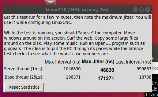 我正在运行带有内核 5.6.x-rt 的 Linux Mint 19.3,我遇到了类似的问题。对我来说问题是“IRQ 合并”。 1.) 安装“ethtool” 2.) 验证合并设置(应该全部读作“0”/rx-usecs 通常不是“0”) cnc@LinuxCNC:~$ ethtool -c enp3s0f0 enp3s0f0 rx-usecs: 0 tx-usecs:0 rx-usecs-low: 0 rx-usecs-high: 0 3.) 将设置更改为“0” 4.) 再次测试 |