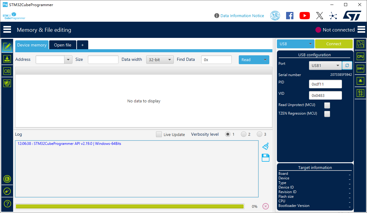 控制板的固件程序下载方式和STM32没有任何区别,都是使用ST官方的下载软件STM32CubeProgrammer