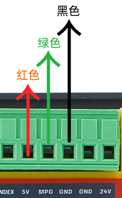 红色5V和黑色GND 为手轮供电,连接到控制器任意5V和GND即可,