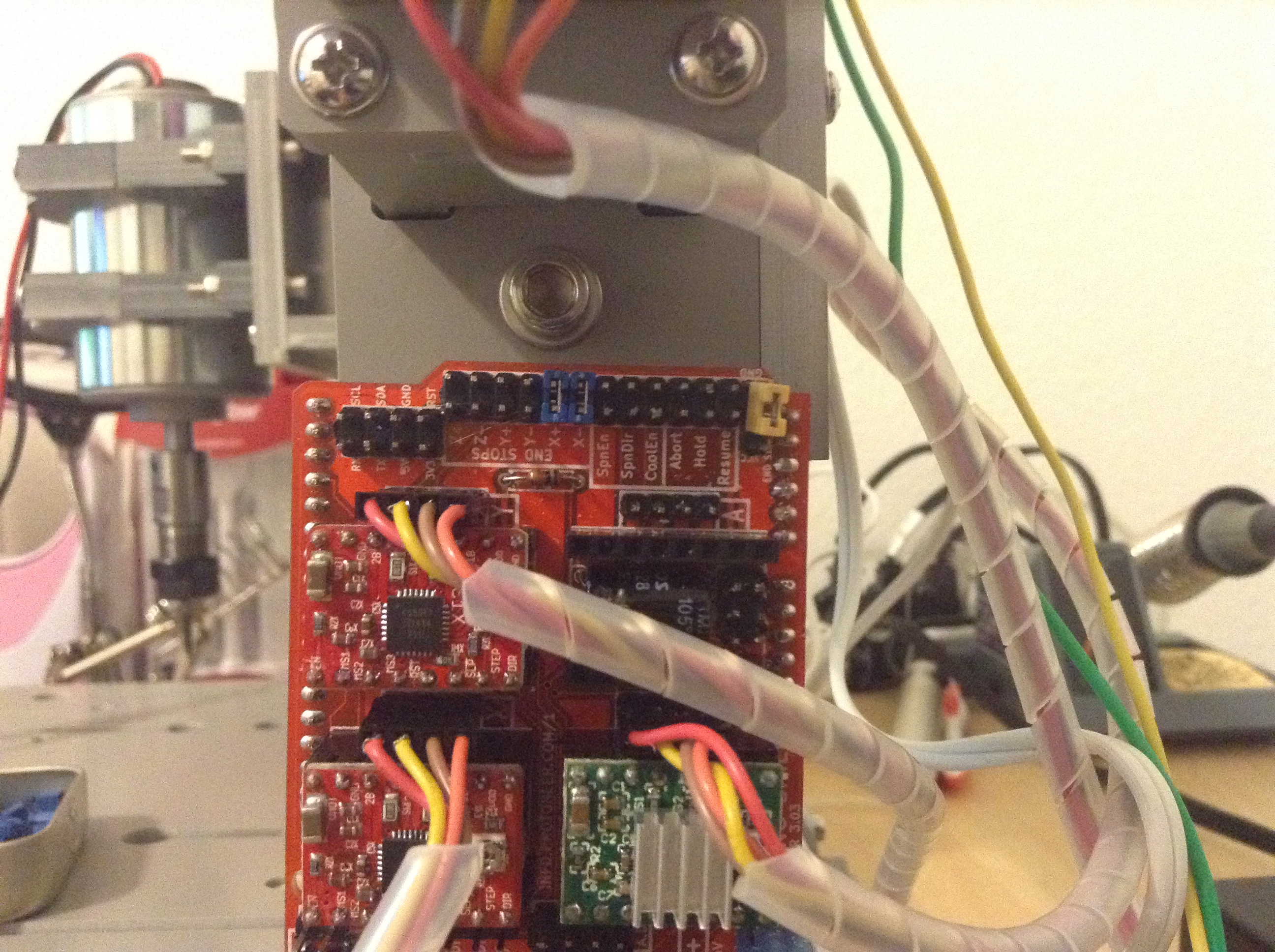 我测试/验证了当开关关闭时该引脚接收到低电平。为了进一步测试,我将跳线插入每个末端止动销并将所有销接地,但我能够将所有 3 个轴移动到每个方向。