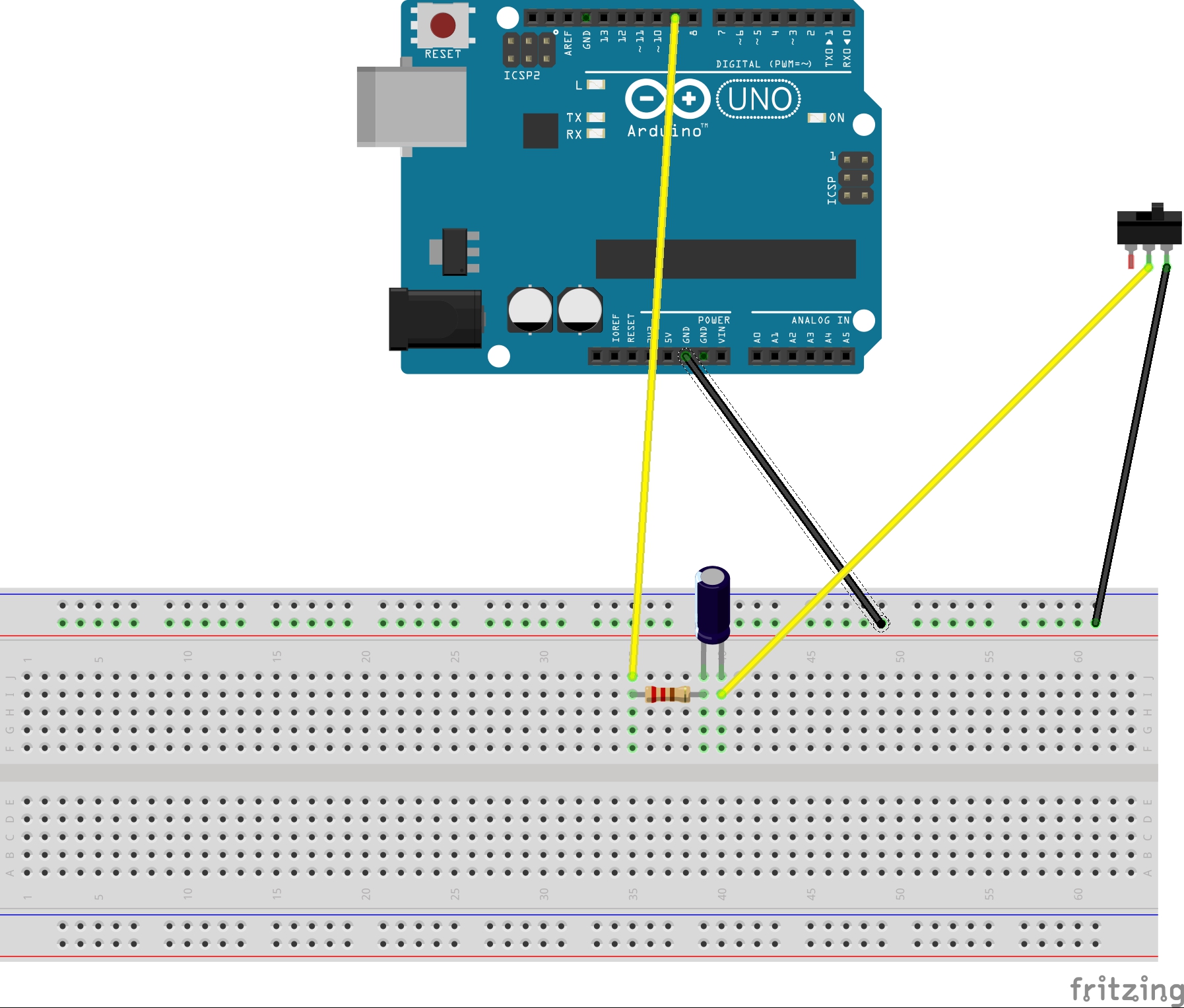 好的,很抱歉在我尝试所有操作之前询问(尽管我努力尝试了几天)但我终于解决了我的问题:我想知道这是否是接线问题,确实如此,通过此接线 grbl 能够检测到开关触发器但是在那之后就不知道开关状态是什么了……现在我只要拆下电容器就可以正常工作了!! |