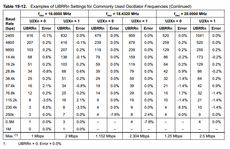 我确实在所有波特率下都出错了。有些更少,但我测试的所有内容最终都显示错误。你声称 250000 波特应该不会产生错误,但我在#845的一篇帖子中说明了这一点