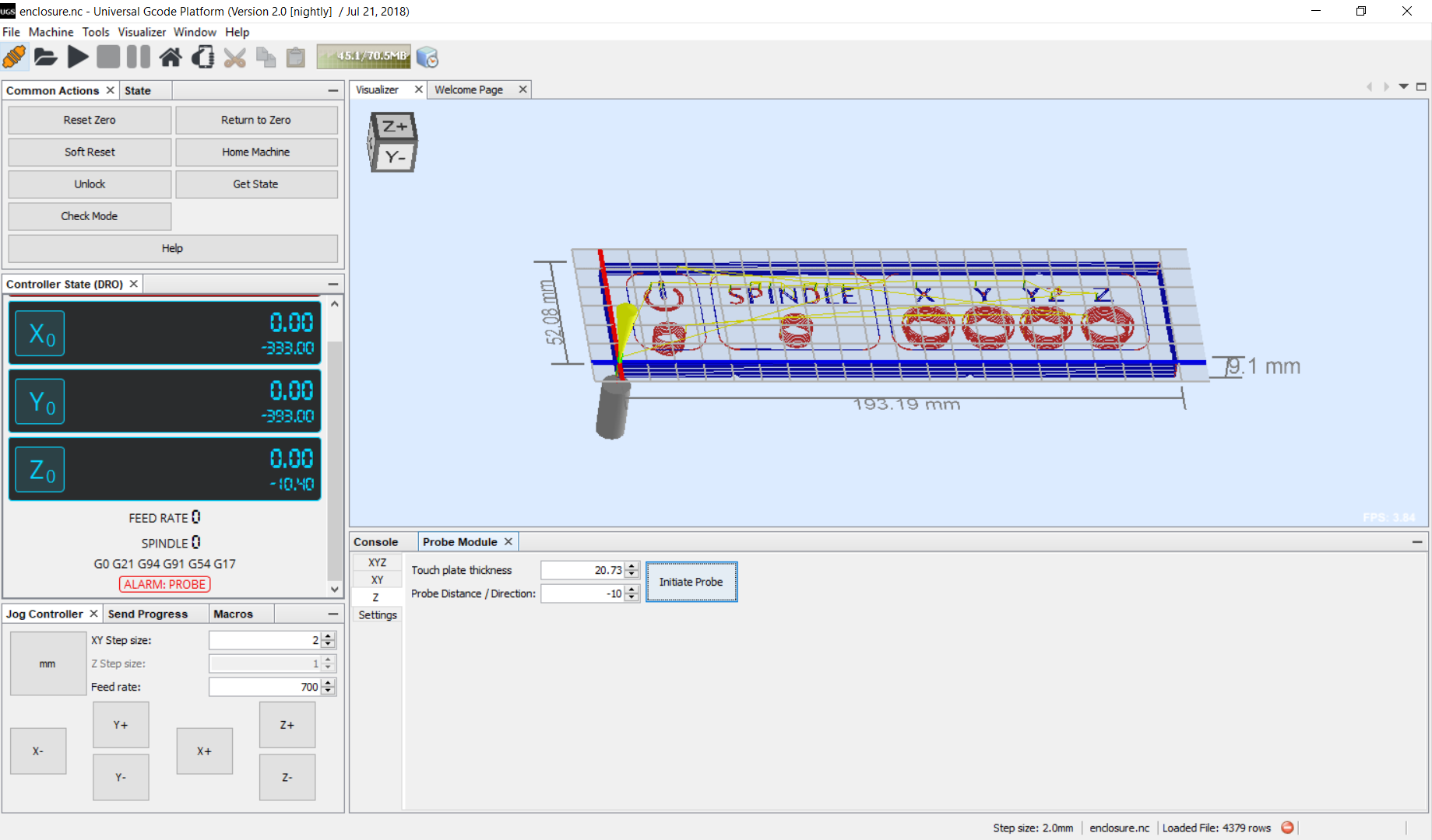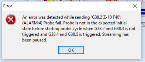 ALARM:PROBE但我的探头没有探测也没有接触任何东西来关闭电路。当我开始探测时(归位后,重新定位到我的工件并将轴置于 0),我得到了一堆错误。