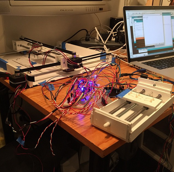 行。我(再次)重新连接了我的限位开关。一切正常。这个小弗兰肯斯坦的怪物永远不会是美丽的东西,但看到由泡沫芯制成的东西四处移动很有趣。 奇怪的是,Lim:从未露面。不知道为什么。限位开关肯定在做它们应该做的事情,因为轴都按预期停止和反弹。反正。步步高升! |