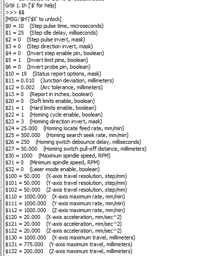 进一步测试似乎每当我调用 $H 它默认进入拉断模式,就好像 CNC 已经按下开关一样。它重复拉出运动两次然后退出。 当我尝试切换到 $5 = 0 时,我收到 ALARM 8 错误消息,提示“Pull off travel failed to clear limit switch”。 |