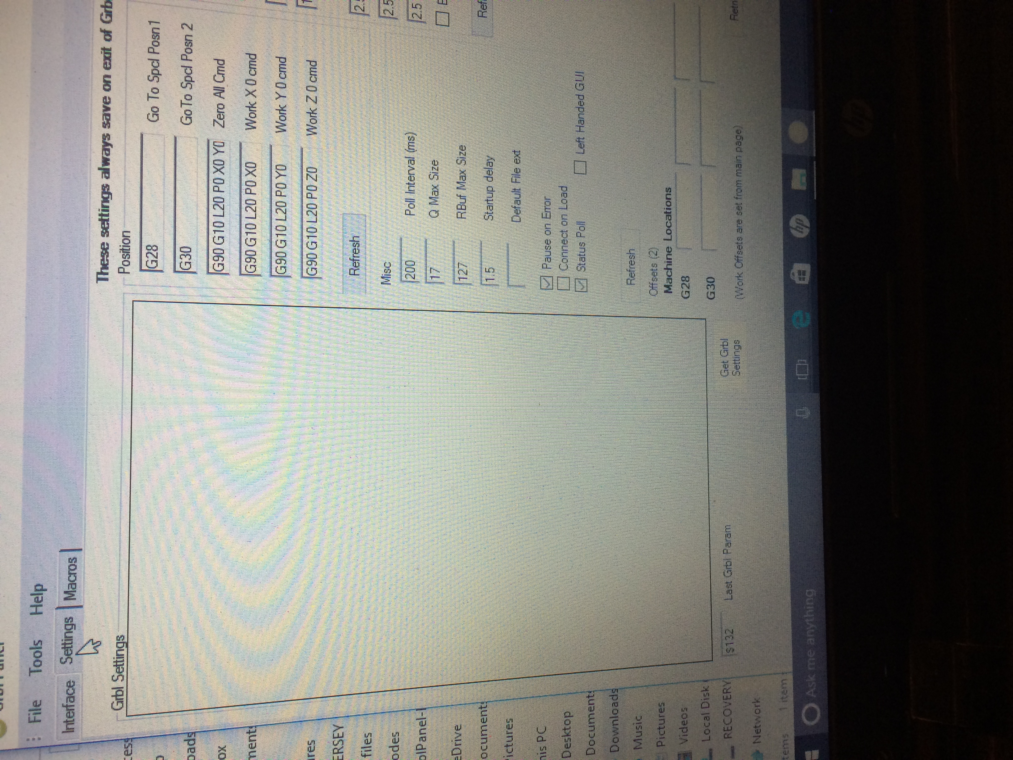 正在切割设计和机器停止,GRBL 设置中没有任何内容,只是空白,我的 X、Y、Z 设置中没有任何内容,我的主页按钮也不见了。