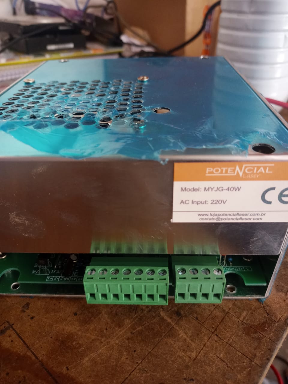Hola todos, me he comprado una fuente y un laser co2 40w en las fotos tengo la conexión y el botón test sirve。 |