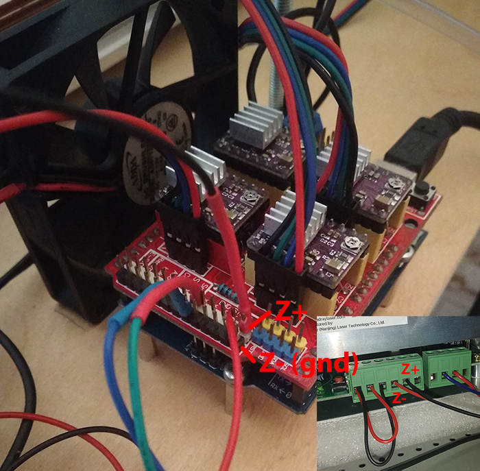 对我来说,以下方法有效。 将 TL-WP-G- 短路并连接到 Gnd (-z) CNC shield v3, z+ 从屏蔽到电源的 IN 点。在 LaserGRBL 软件的 grbl v1.1 上运行。 |