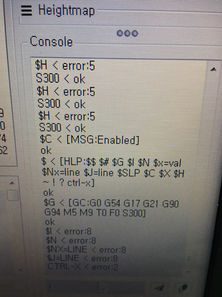 打开 yunocho 打开了这个 issue 2018 年 1 月 30 日 · 2 条评论 打开 grbl 0.8 请修复错误信息。#1348 yunocho 打开了这个 issue 2018 年 1 月 30 日 · 2 条评论 注释 汤之町 评论了 2018 年 1 月 30 日 $$(查看 Grbl 设置) $#(查看 # 参数) $G(查看解析器状态) $I(查看构建信息) $N(查看启动块) $x=value(保存 Grbl 设置) $Nx=line(保存启动块) $C(检查 gcode 模式) $X(关闭警报锁) $H(运行归位循环) ~(循环开始) !(进给保持) ? (当前状态) ctrl-x(重置 Grbl) 如果您点击上面的命令,将显示一条错误消息。 我收到如下图所示的错误消息。有解决办法吗? X3ms蛇 评论了 2018 年 1 月 30 日 通过电子邮件 仍然使用 0.8 有什么特殊原因吗?你用的是什么发件人?2018-01-30 2:53 GMT+00:00 yunocho <notifications@github.com>: …… 109JB 评论了 2018 年 1 月 31 日 • 已编辑 您在图片上显示的错误消息是 grbl v1.1 错误消息。 错误 5 表示归位未配置 错误 8 表示当您发出 $ 命令时 grbl 没有空闲 喜欢 (0) M226 Gcode命令实现 #1108 stream.py 示例混淆 #1109 v1.3.8-EDGE 重启后键盘快捷键消失 #427 关闭 无法在 gsender 1.2.0 中打开 .gcode 文件 #367 RaspberryPi 运行 gsender 时出现问题 #89 向 fluidnc 发送 $$ 会导致 gsender 崩溃 #473 v1.3.8-EDGE 重启后键盘快捷键消失 #427 关闭无法在 gsender 1.2.0 中打开 .gcode 文件 #367RaspberryPi 运行 gsender 时出现问题 #89向 fluidnc 发送 $$ 会导致 gsender 崩溃 #473功能请求:抑制发送到机器的 gcode 中的 gcode 注释。 #444 关闭通过网络连接进行连接 #171操纵杆运动的剩余问题 #204 关闭新版本认为我的机器一直处于锁定状态 #474 关闭