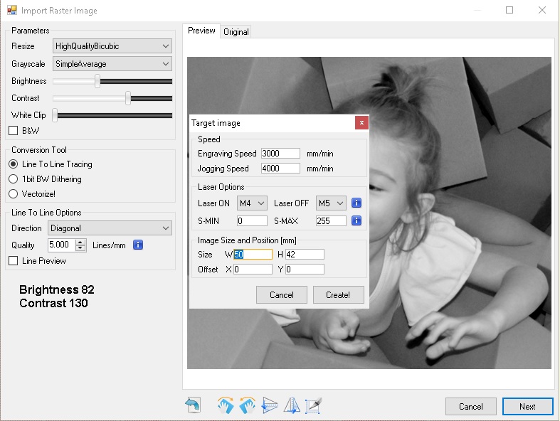 下载更新,现在当我编辑图像进行雕刻时,我在照片上得到白色的选定区域,必须调整到没有对比度的点以消除它们。包括图像和设置的照片。有什么建议么?谢谢
