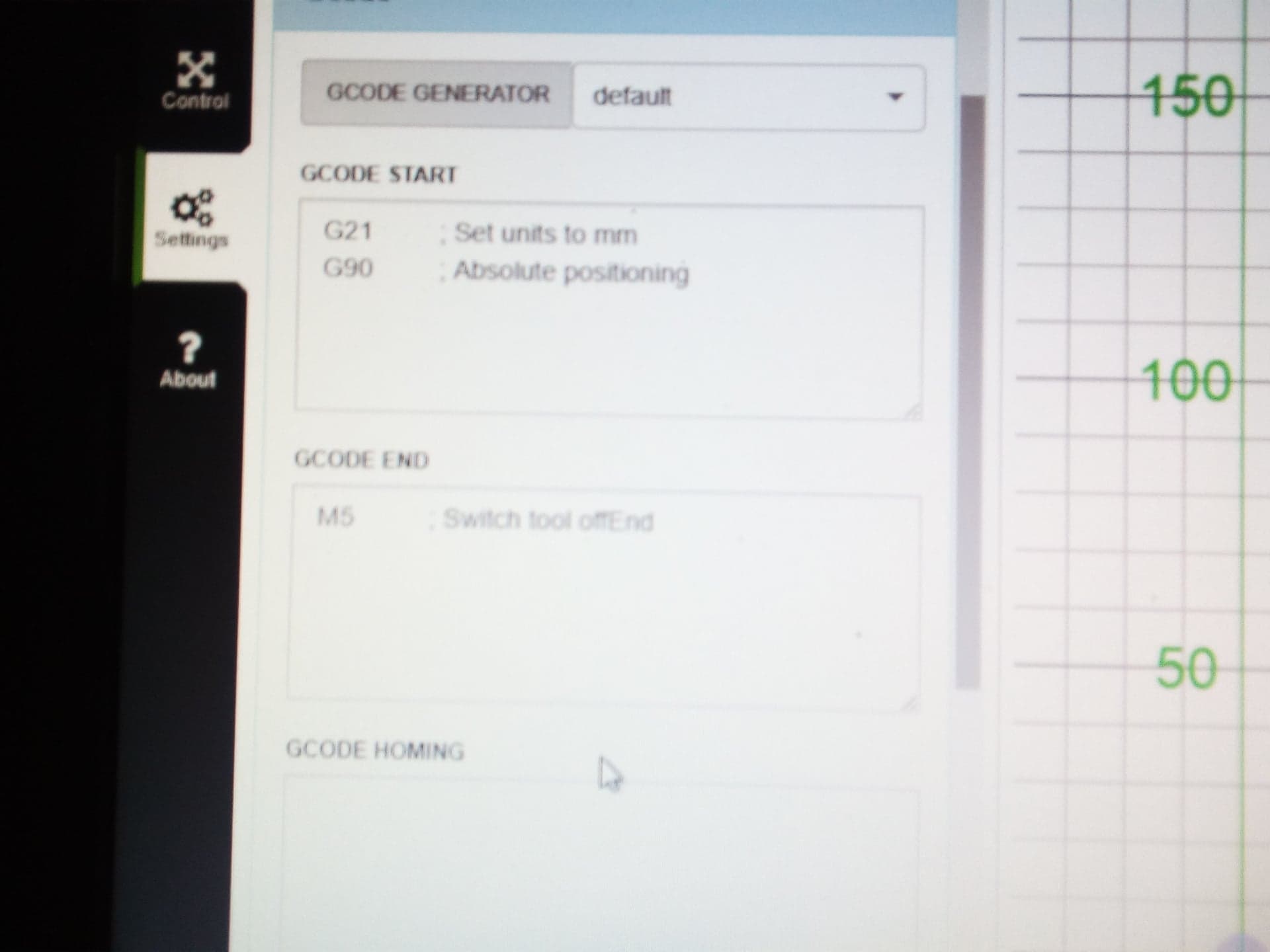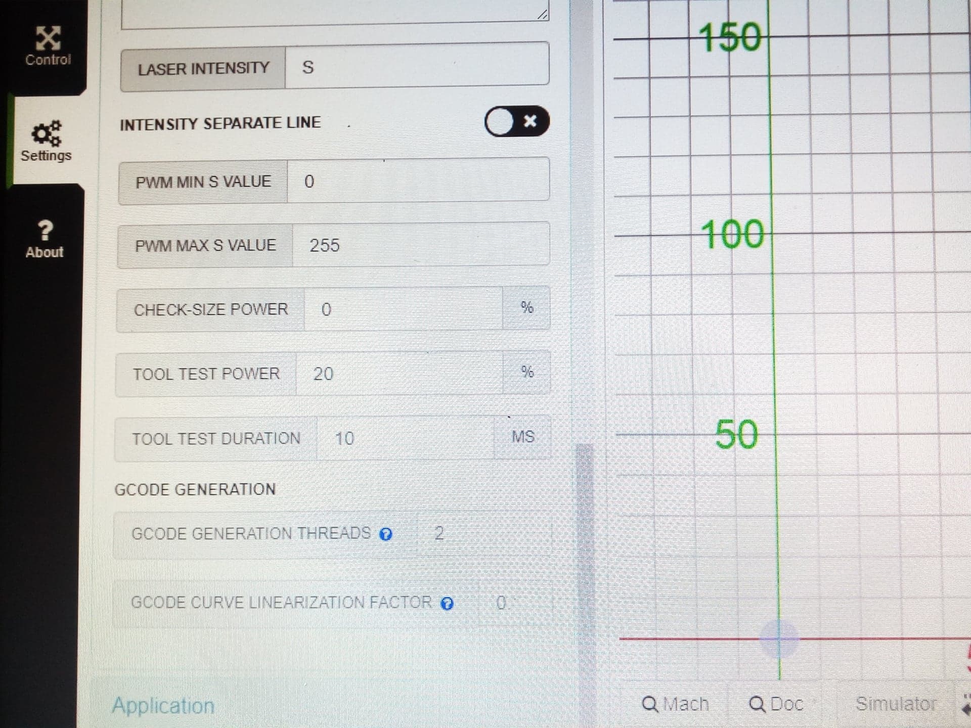打开 CharlesMatt 打开了这个问题 2019 年 8 月 22 日 · 3条评论 打开 激光 CO2 PWM 连接#1543 CharlesMatt 打开了这个问题 2019 年 8 月 22 日 · 3条评论 注释 查尔斯马特 评论了 2019 年 8 月 22 日 你好 ! 谁能帮我? 我有一个具有这种连接和特性的 40w 激光管电源 ,我用一个没有斜坡或 cnc 屏蔽的 arduino mega 2560 进行了连接,我使用的软件是 LaserWeb,nema 电机正在工作,我的问题是 PWM,这个东西不工作,当我脉冲“激光测试”按钮时没有任何反应,我将我的连接建立在这张图片上 我再说一遍,所有轴都在工作,我在这个项目中使用的 GRBL 版本是 1.1,唯一的问题是激光控制或 pwm。 请帮帮我 !:C 亚历杭德罗马蒂亚斯德里弗兰 评论了 2020 年 1 月 8 日 我也有同样的问题。激光器的电源始终打开,PWM 控制不会关闭电源。 请帮忙!谢谢你。 作者 查尔斯马特 评论了 2020 年 1 月 23 日 我解决了这个问题,你已经更改了 grbl 配置中的参数 32,并在软件中使用图像的参数创建下一个配置 保存并上传设置,更多细节在这里: https://www.youtube.com/watch?v=oXHmOdObTvw&t=75s hkuwabara3 评论了 2021 年 8 月 25 日 • 编辑 激光功率可设置为 $32=1 $30=1000 LaserGRBL 配置 M4 激光开启 M5 激光关闭 S:0 到 1000 在 cpu_map.h 中,输入 // Prescaled, 8-bit Fast PWM mode. #define SPINDLE_TCCRA_INIT_MASK ((1<<WGM20) | (1<<WGM21)) // Configures fast PWM mode. // #define SPINDLE_TCCRB_INIT_MASK (1<<CS20) // Disable prescaler -> 62.5kHz #define SPINDLE_TCCRB_INIT_MASK (1<<CS21) // 1/8 prescaler -> 7.8kHz (Used in v0.9) // #define SPINDLE_TCCRB_INIT_MASK ((1<<CS21) | (1<<CS20)) // 1/32 prescaler -> 1.96kHz //#define SPINDLE_TCCRB_INIT_MASK (1<<CS22) // 1/64 prescaler -> 0.98kHz (J-tech laser) 如果将 pwm 设置为 1/8 分度,您可能会得到漂亮的灰度雕刻。 喜欢 (0) Z 轴运动。 #100 保持连接 #101 v1.3.8-EDGE 重启后键盘快捷键消失 #427 关闭 无法在 gsender 1.2.0 中打开 .gcode 文件 #367 RaspberryPi 运行 gsender 时出现问题 #89 向 fluidnc 发送 $$ 会导致 gsender 崩溃 #473 v1.3.8-EDGE 重启后键盘快捷键消失 #427 关闭无法在 gsender 1.2.0 中打开 .gcode 文件 #367RaspberryPi 运行 gsender 时出现问题 #89向 fluidnc 发送 $$ 会导致 gsender 崩溃 #473功能请求:抑制发送到机器的 gcode 中的 gcode 注释。 #444 关闭通过网络连接进行连接 #171操纵杆运动的剩余问题 #204 关闭新版本认为我的机器一直处于锁定状态 #474 关闭
