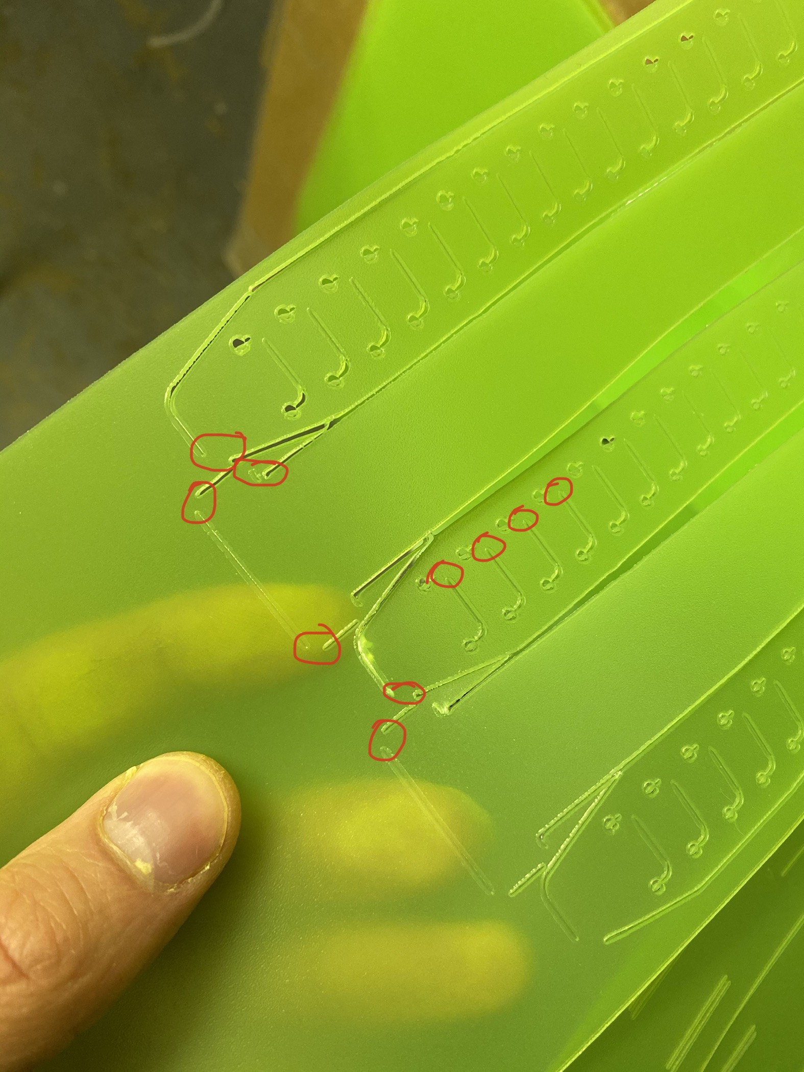 附上照片。用红色标记似乎没有切割/激光没有激活的部分。