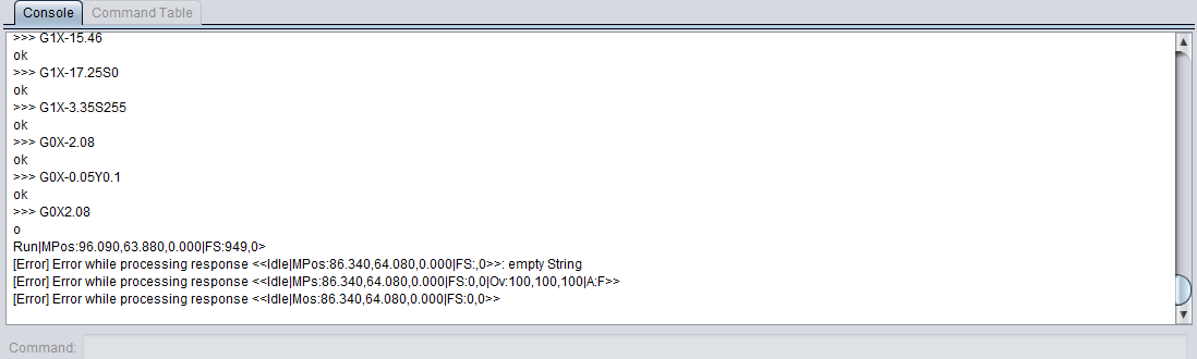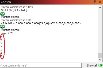 从 LightBurn 软件控制台,我注意到从控制器接收到奇怪的信息。我正在使用 Arduino Uno GRBL 防护罩。