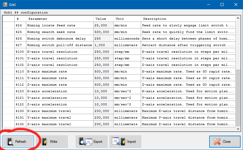 我尝试卸载 laserGRBL 并重新安装它…但它仍然显示菜单下的 v1.1 配置值 – > Grbl -> Grbl 配置…