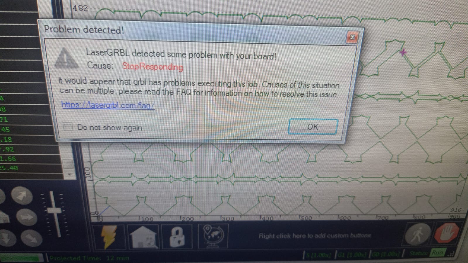 lasergrbl 经常显示错误,检测到您的电路板在进行过程中出现了一些问题。