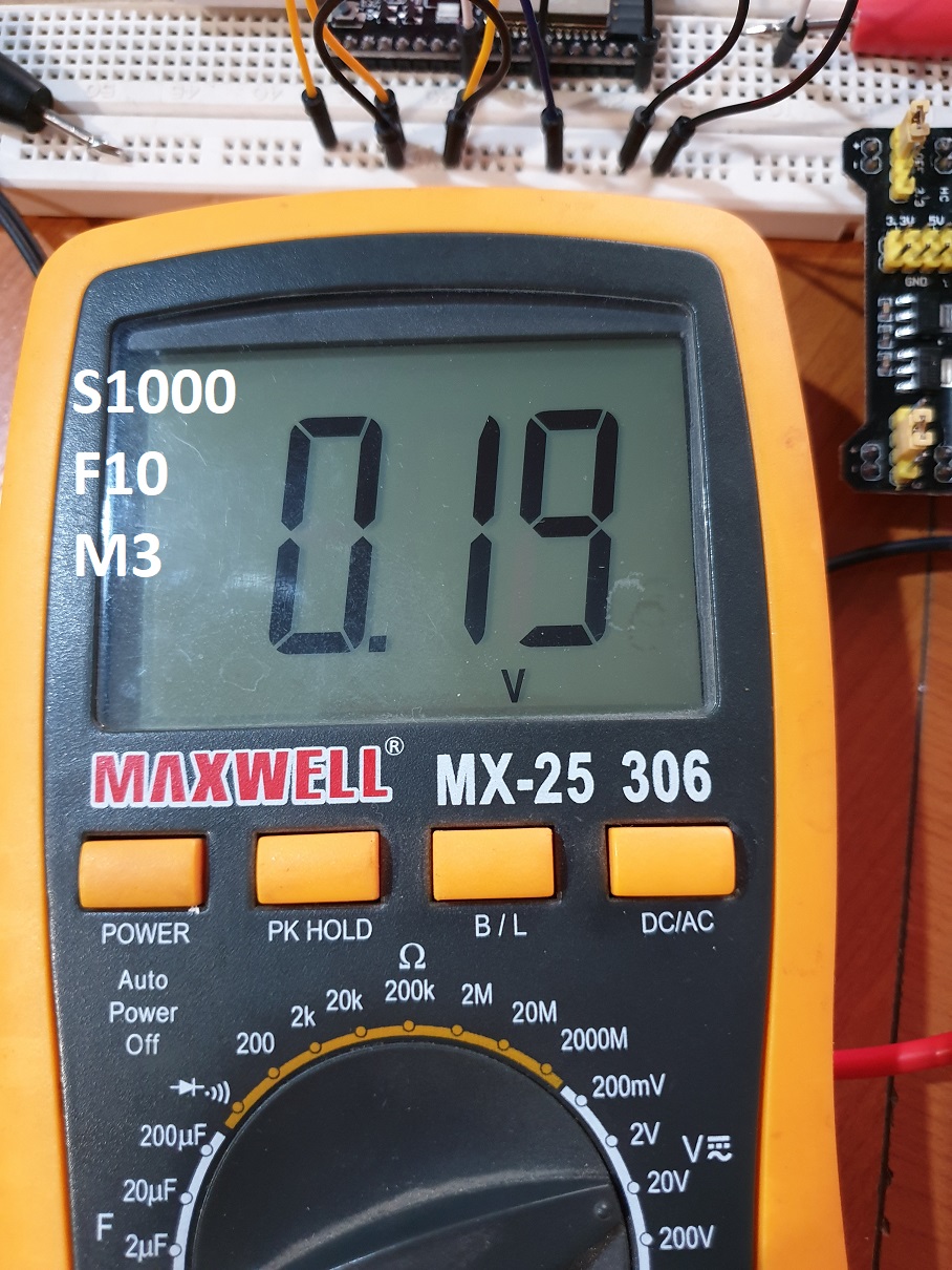 我做了一个测试台。我设置了激光模式和我发现的信息。但是当 gcode 运行时,激光不会打开。我在 80% 时测量并输出 0.15 伏。