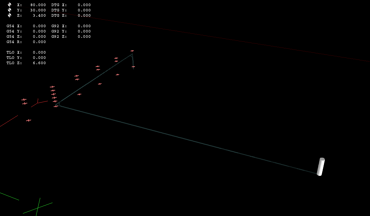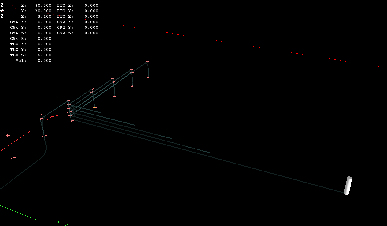 谢谢,@KurtJacobson,我能够在 master 中重现(提交02ba5a1)。 这是由 该 在子例程中,interp 队列不会被截断,因为当前行在子例程定义内的某处,甚至可能在不同的文件中,因此将当前行与起始行进行比较是没有意义的。通常情况下,这是可以的,因为 canon 命令在 interp 列表中排队,并且在子例程将控制权返回给主程序之前未发出,并且 interp 列表再次被截断。 然而,M6 重映射在生成器中产生了一个队列 作为@KurtJacobson指出,仅执行起始行之前的换刀,但不执行中间的 G0 程序段。这是预料之中的,因为这些块在主程序中,并且正在按预期被截断。 这一定是在 PR #221之后被破坏的,它修复了 我解决这个问题的第一个想法是: