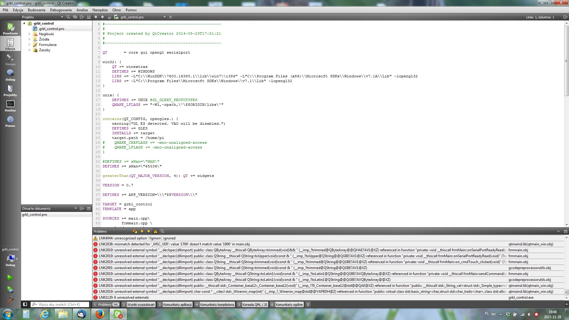 关闭 losmichal 打开了这个问题 2015 年 11 月 29 日 · 5 条评论 关闭 编译问题#19 losmichal 打开了这个问题 2015 年 11 月 29 日 · 5 条评论 注释 洛斯米哈尔 评论了 2015 年 11 月 29 日 你好 我尝试在 Qt 中编译它,但仍然出现很多错误,你能告诉我你使用的是什么编译器吗?我尝试了 VC++8 和 VC++14,但有很多错误 所有者 登维 评论了 2015 年 11 月 29 日 您好,我正在使用 MinGW 编译器。 作者 洛斯米哈尔 评论了 2015 年 11 月 29 日 你好 感谢您的快速重播。 我已经添加了 MinGW 4.9.2 32 位并且它编译时有很多警告,它运行但是关于可视化 你能帮我解决这个问题吗?? 所有者 登维 评论了 2015 年 11 月 29 日 可以不注意警告,它只是关于未使用的变量。 必须调整展示台和桌子。 Visualizer 可以通过设置表单上的“设置为默认值”按钮进行修复。 表 – 具有适当的设置文件(您可以将“settings.ini”文件从上一版本存档复制到程序构建文件夹)。 作者 洛斯米哈尔 评论了 2015 年 11 月 29 日 谢谢它的工作 我要翻译它,我是否必须更改所有标签名称等,或者我可以添加另一种语言 所有者 登维 评论了 2015 年 11 月 29 日 在 .pro 文件中,在“TRANSLATIONS += …”字符串中声明您的翻译(使用 ISO 639 作为名称后缀)。 使用“工具 > 外部 > 语言学家”菜单中的“lupdate”命令创建 .ts 文件。 通过使用“Linguist”应用程序或其他文本编辑器编辑 .ts 文件进行翻译。 使用“Qt creator”应用程序中“工具 > 外部 > 语言学家”菜单中的“lrelease”命令编译 .qm 翻译文件。 将 .qm 文件复制到“grblControl”应用程序构建/运行文件夹的“翻译”目录。 Denvi已完成 关闭 2015 年 12 月 24 日 喜欢 (0) 运行失败——除以零错误 #17 公制/英制错误 #19 v1.3.8-EDGE 重启后键盘快捷键消失 #427 关闭 无法在 gsender 1.2.0 中打开 .gcode 文件 #367 RaspberryPi 运行 gsender 时出现问题 #89 向 fluidnc 发送 $$ 会导致 gsender 崩溃 #473 v1.3.8-EDGE 重启后键盘快捷键消失 #427 关闭无法在 gsender 1.2.0 中打开 .gcode 文件 #367RaspberryPi 运行 gsender 时出现问题 #89向 fluidnc 发送 $$ 会导致 gsender 崩溃 #473功能请求:抑制发送到机器的 gcode 中的 gcode 注释。 #444 关闭通过网络连接进行连接 #171操纵杆运动的剩余问题 #204 关闭新版本认为我的机器一直处于锁定状态 #474 关闭