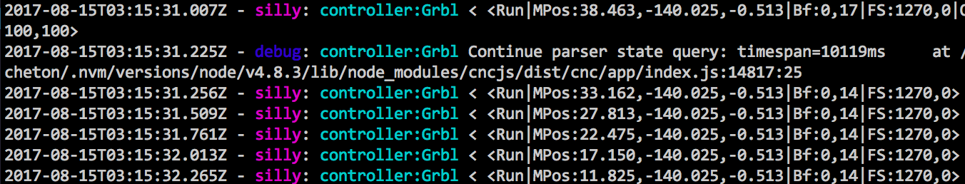 运行 G 代码程序时没有必要强制重新发送解析器状态 ($G),查询计时器的目的是确保 Grbl 会周期性地响应“?” 和引导期间的“$G”命令,对于一些罕见的情况(例如重新连接 USB 电缆等),它可能需要在引导加载程序准备好后再次发送 $G 到 Grbl。 8字节的扣除与Grbl的接收缓冲区大小(默认为128字节)有关,特别是在使用字符计数流协议时,我在发送端减小大小以确保它不会溢出Grbl的接收缓冲区。 CNCjs 服务器会定期向 Grbl 发送