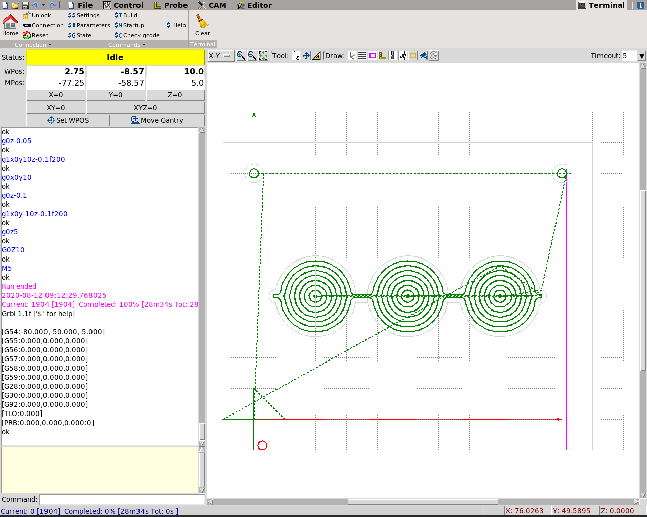 我在切割这个作业时遇到了一个随机偏移被添加到 XY 平面(附加)。最后的屏幕截图显示 X 轴和 Y 轴分别偏移了 2.75 和 1.43mm。Z 是正确的。