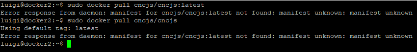 尝试下载 Docker 映像时出现以下错误;“来自守护进程的错误响应:cncjs/cncjs 的清单:最新未找到:清单未知:清单未知”