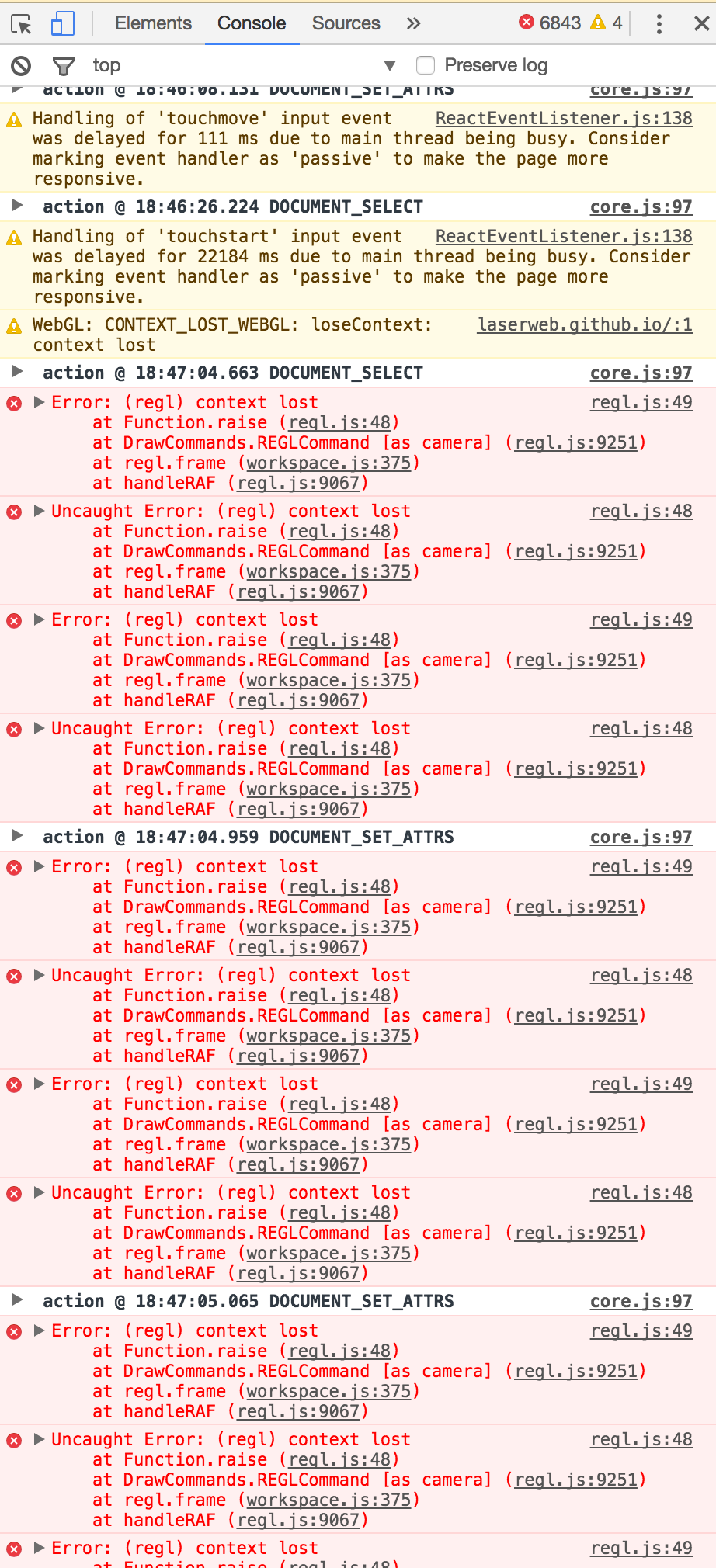 该死的令人困惑。在 VM 上运行应该有更多的开销。regl 错误是 WebGL 崩溃。 |