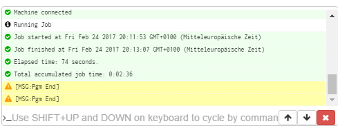@cprezzi昨天注意到,如果最后一个操作很长(在我的例子中是一个矩形,需要大约 2 分钟来切割),完成时间是在操作发送到机器时输出的,而不是在它完成时输出的。你能做些什么吗? |