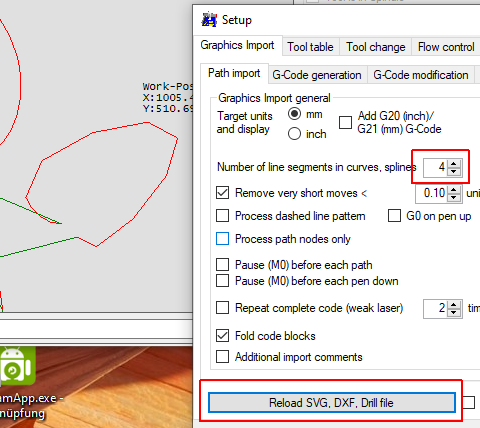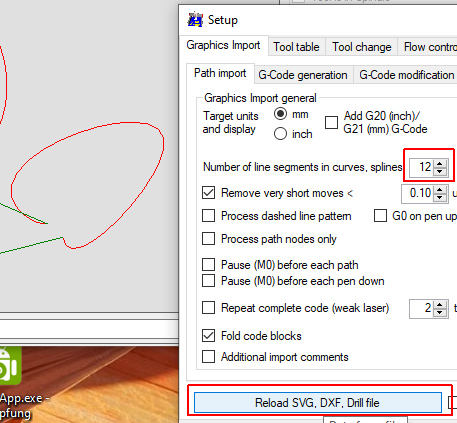 更改任何设置后,您需要重新导入(“重新加载 SVG、DXF”)文件。