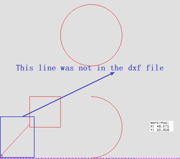 一件非常奇怪的事情发生了。我测试的dxf文件的矩形被三个相同大小的矩形重叠(如图1所示)。半圆也是由三个相同大小的几何图形重叠在一起的,这个dxf在绘图仪软件中第一次打开显示如图2,但是再次用绘图仪软件打开时显示如图在图3中。(图3中的蓝线是软件本身显示的,dxf文件中没有出现这条线。但是第一次用绘图仪软件打开的时候没有显示这条线,第二次就显示了时间,这很奇怪)