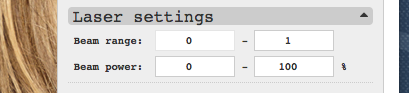 @jorgerobles好的,我现在了解它的设置方式。 光束范围正确位于设置中,因为它设置了您的机器期望 S 值的总体范围。 光束功率在操作中需要有一个最小值和最大值。这在 raster-to-gcode.js 中可用 例如,如果用户设置: 那么生成的 gcode 的 S 值范围为 0.25-0.85。 |