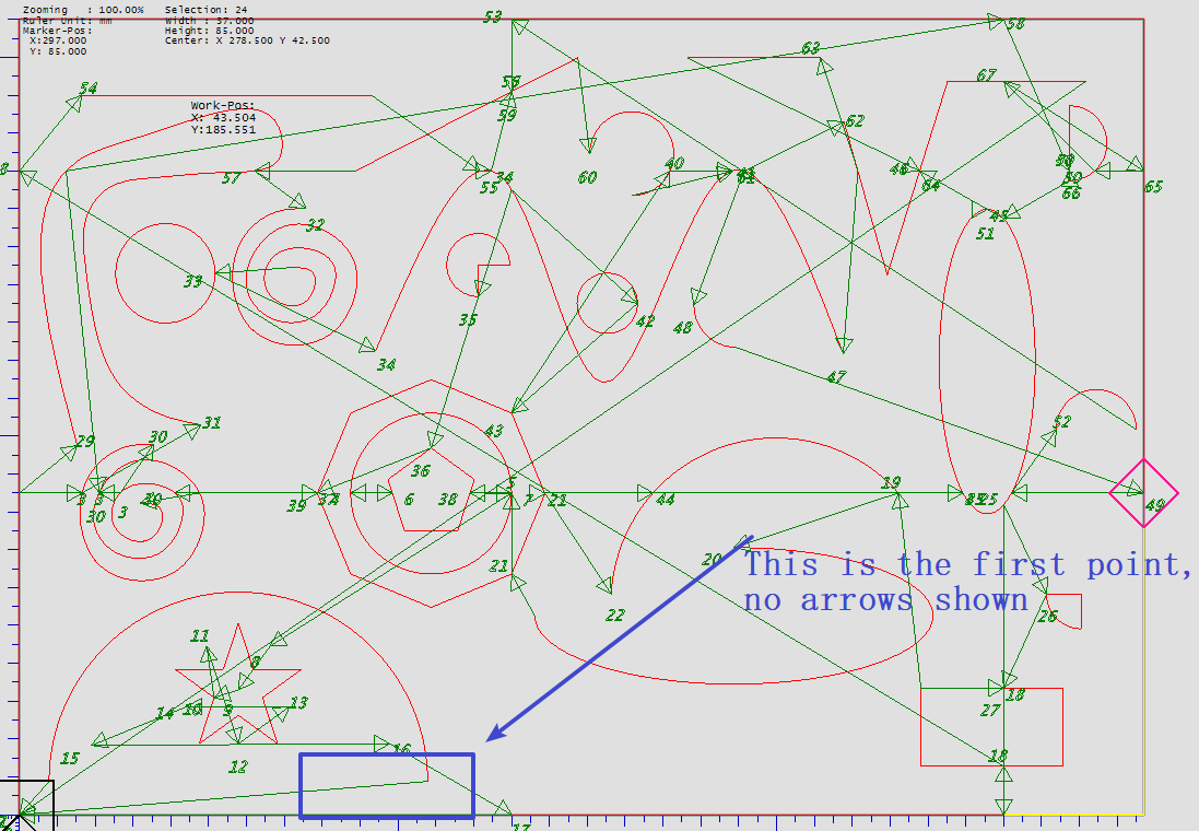 dxf2gcode软件会为每个轨道添加一个排序数字显示,并标记加工方向。我觉得很好。未来版本的绘图仪软件会增加什么类型的功能吗?如果要添加,可以把表示排序顺序的数字和表示处理方向的箭头做成可选的,这样用户就可以决定是显示还是隐藏。