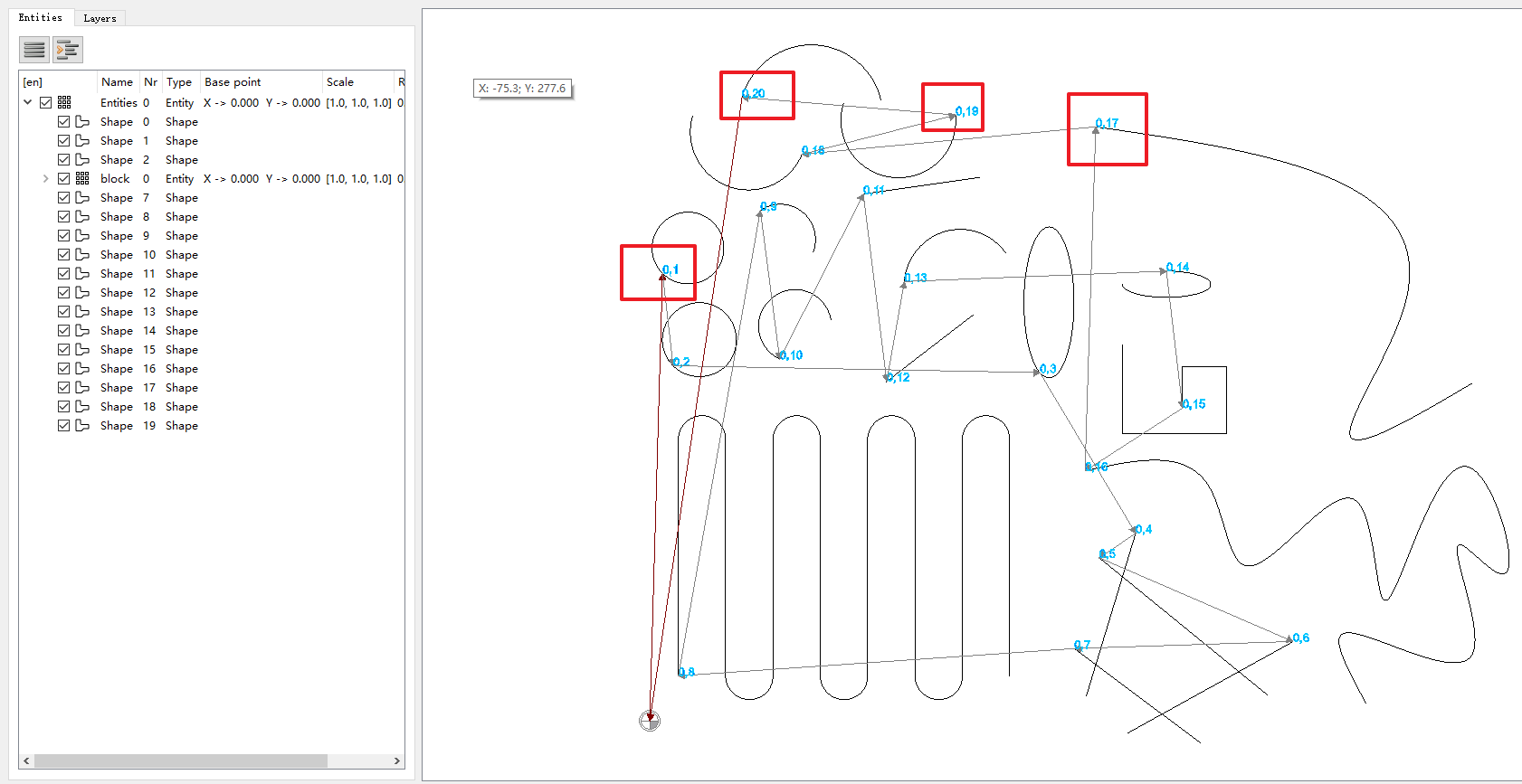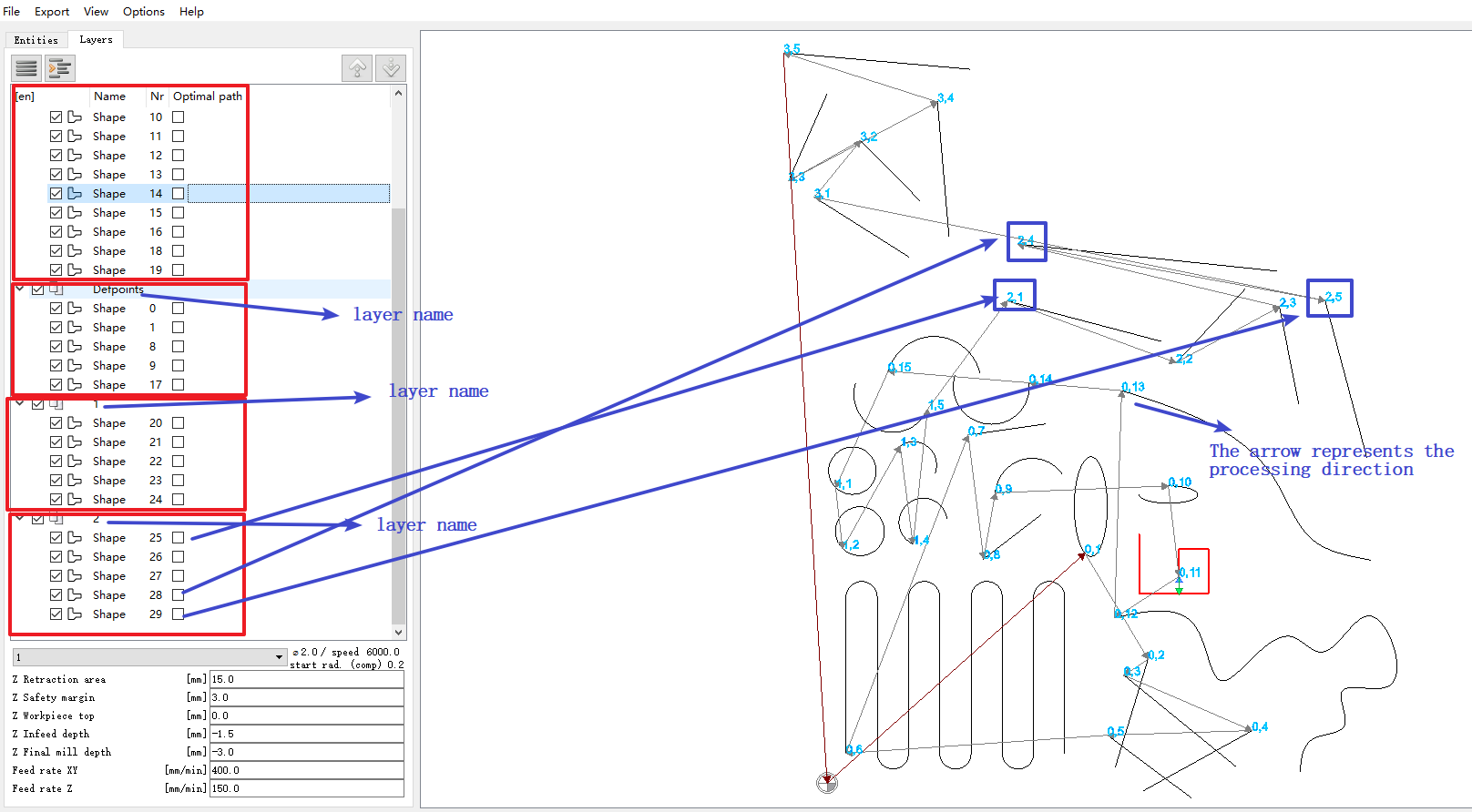 dxf2gcode显示的数字在层的前面,后面是图元在层中的顺序。 用于测试 |