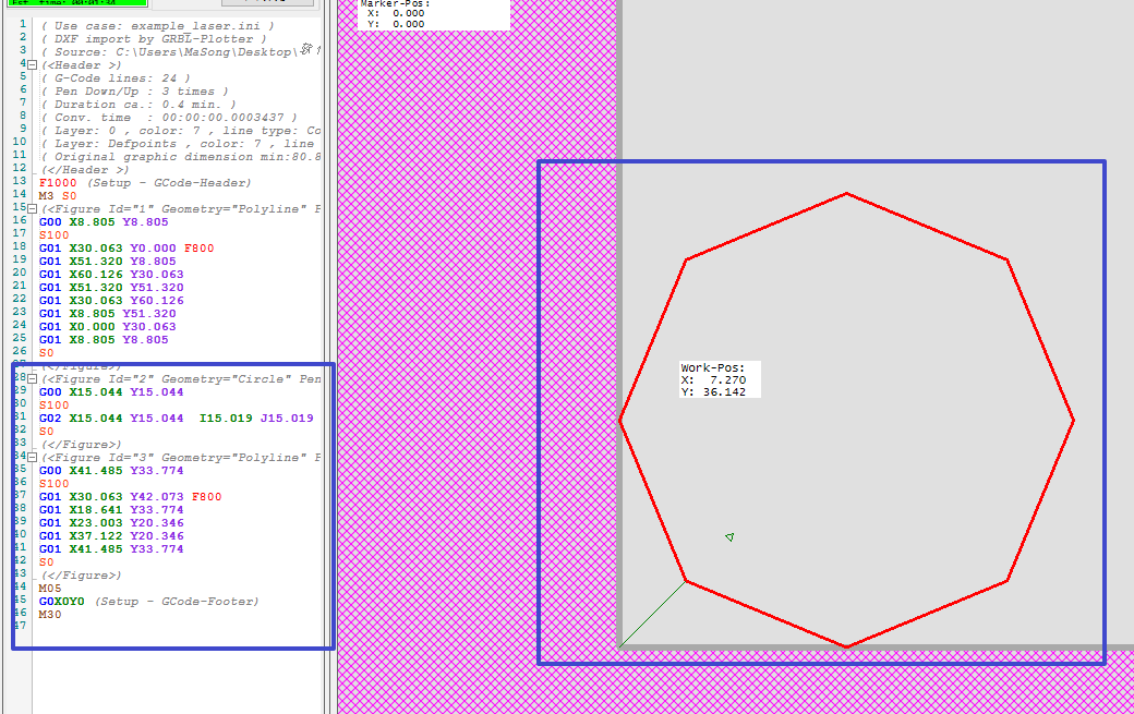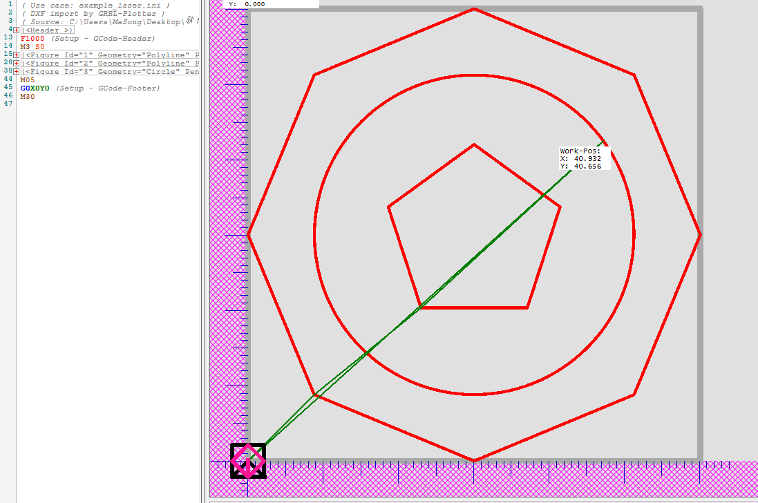 下面截图是dxf2gcode中的显示方式