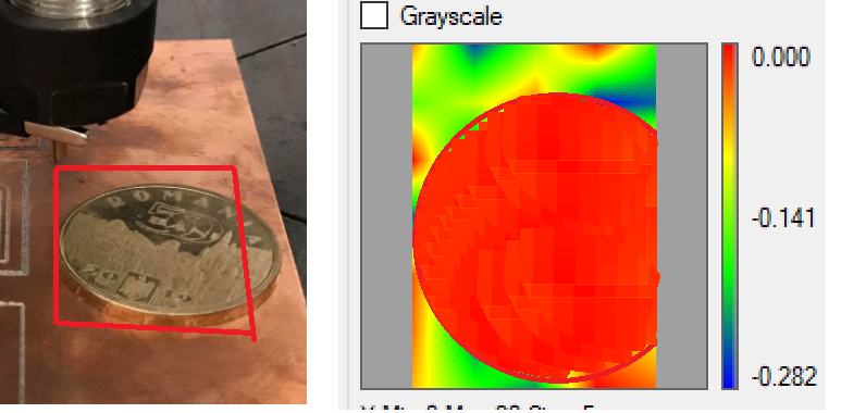 例如,我在 PCB 上放了一枚硬币(硬币厚度为 2 毫米),我进行了设置(面积、深度、保存高度、速度),然后开始从表面扫描生成高度图。结果是一张错误的地图,我认为这与偏移或截断无关。