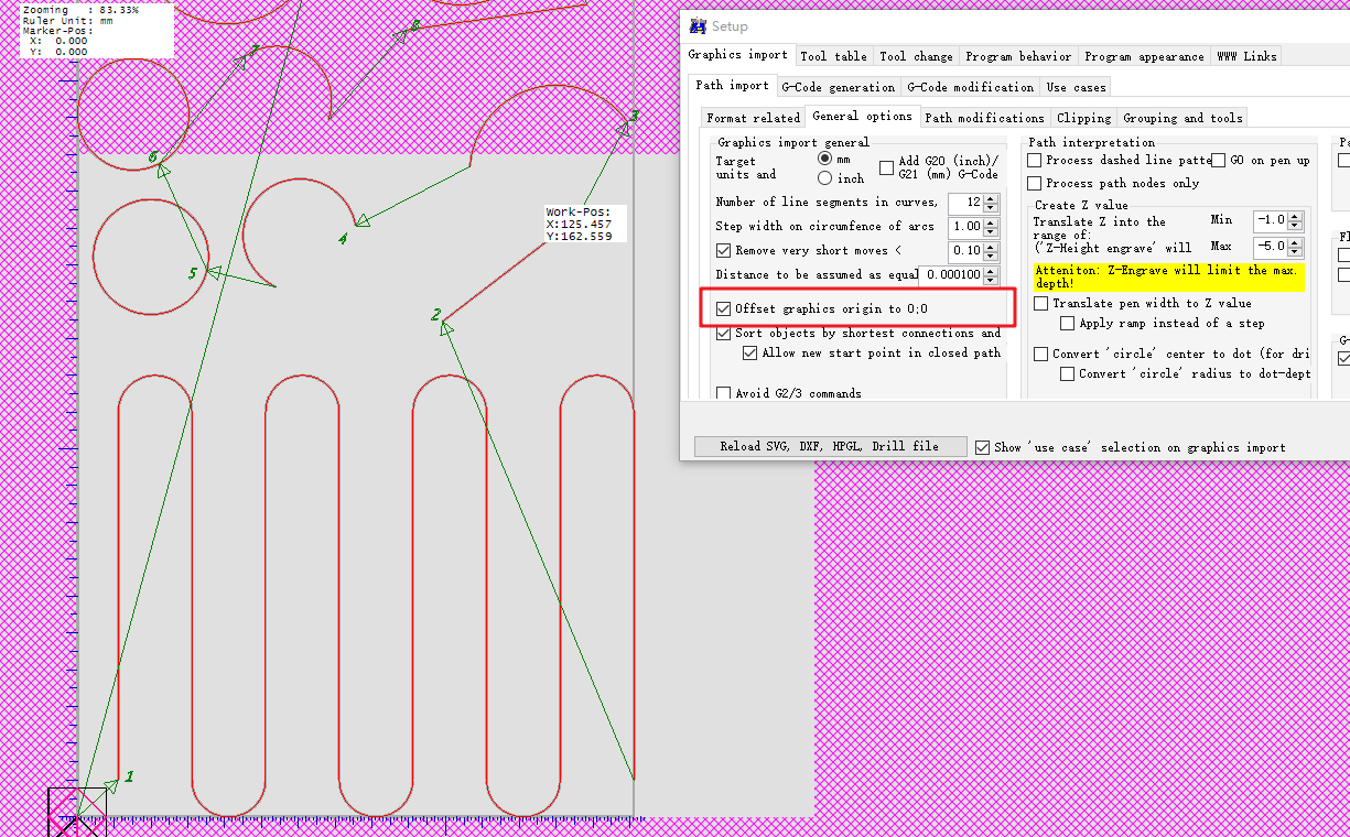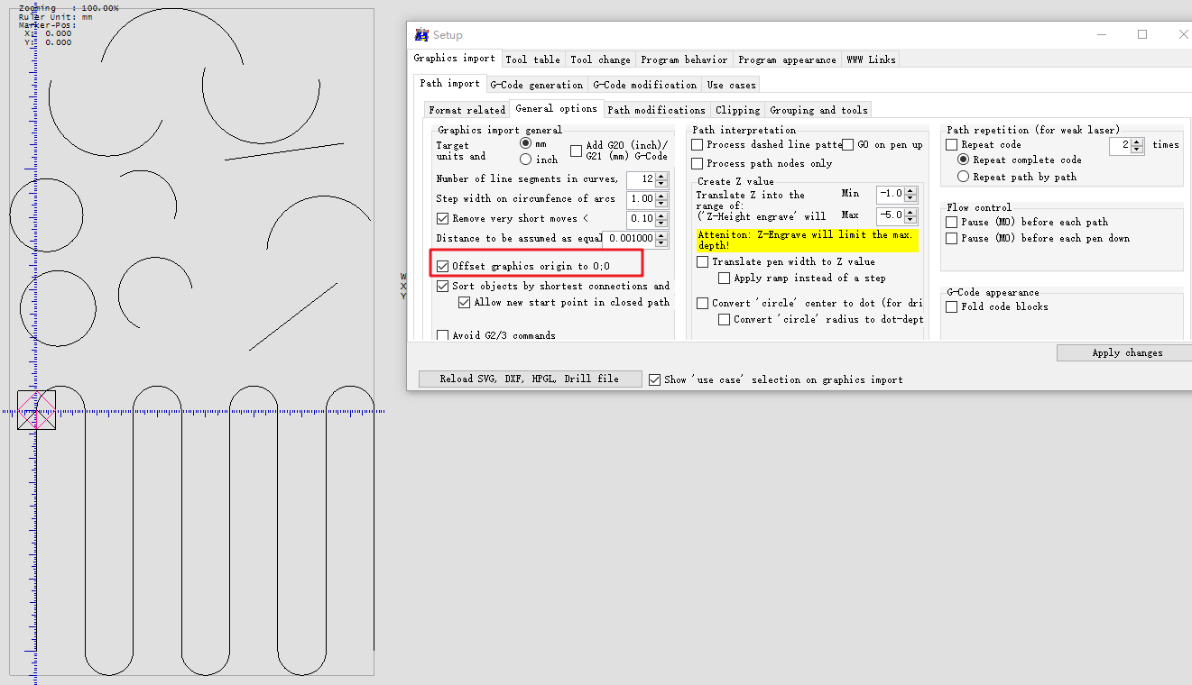 使用1.5.2.0版本软件导入dxf图形时,勾选“Offset graphics origin to 0;0”选项。dxf图形没有偏移到坐标x=0,y=0