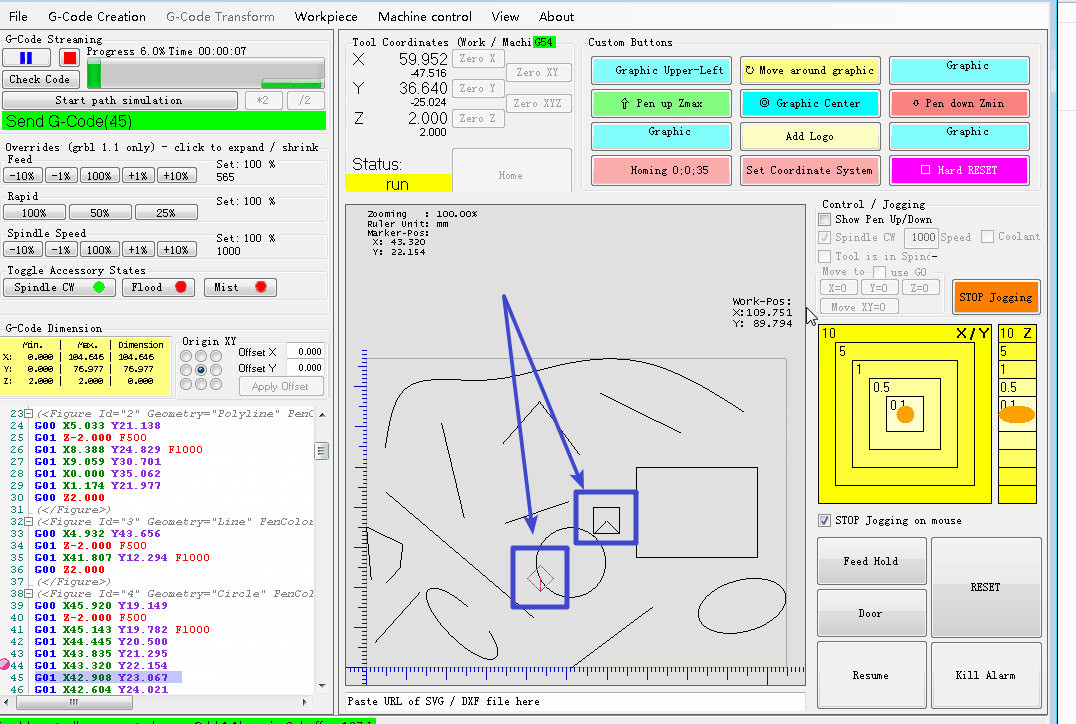 关闭 连枣子 开了这个issue 2020 年 12 月 4 日 · 2 条评论 注释 莲枣子 评论了 2020 年 12 月 4 日 跑步时,几何轨迹显示区显示一个黑色矩形和一个粉色矩形。两个矩形都在移动。这两个矩形代表什么? 所有者 svenhb 评论了 2020 年 12 月 4 日 黑色标记是上述坐标中的实际工具位置。 红色标记显示来自尚未发送的 GCode 的坐标。 svenhb 添加了 问题 标签 2020 年 12 月 4 日 作者 莲枣子 评论了 2020 年 12 月 4 日 谢谢 svenhb已完成 关闭 2020 年 12 月 19 日 喜欢 (0) 上一篇文章 加载 gcode 按钮不可靠 #213 v1.3.8-EDGE 重启后键盘快捷键消失 #427 关闭 无法在 gsender 1.2.0 中打开 .gcode 文件 #367 RaspberryPi 运行 gsender 时出现问题 #89 向 fluidnc 发送 $$ 会导致 gsender 崩溃 #473 v1.3.8-EDGE 重启后键盘快捷键消失 #427 关闭无法在 gsender 1.2.0 中打开 .gcode 文件 #367RaspberryPi 运行 gsender 时出现问题 #89向 fluidnc 发送 $$ 会导致 gsender 崩溃 #473功能请求:抑制发送到机器的 gcode 中的 gcode 注释。 #444 关闭通过网络连接进行连接 #171操纵杆运动的剩余问题 #204 关闭新版本认为我的机器一直处于锁定状态 #474 关闭