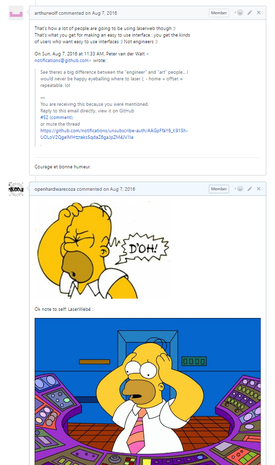 当我在LaserWeb/deprecated-LaserWeb3#52中研究 CAM 树概念时- arthur wolf 评论说我应该如何保持 UI 简单以便与 Arty 人一起工作……我争辩说我更喜欢工程方法。我开了个玩笑,说“note to self, laserweb4”,然后一大堆按钮让 Homer 感到困惑……我想知道我们是否实现了这个目标(; |