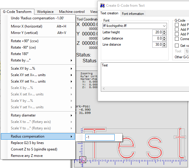 文本将从 SVG 字体的 LFF 创建:https ://github.com/svenhb/GRBL-Plotter/tree/master/GRBL-Plotter/GCodeCreation/CreateFromForm检查名称中带有“文本”或“字体”的文件。 你使用的字体怎么样——你从哪里得到的?也许还有您需要的款式? 我的建议是:制作你自己的 SVG 字体——这里有一些链接可以开始: |