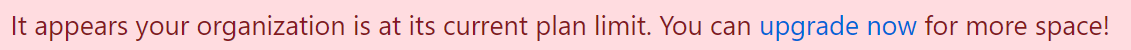 不出现在我面前。也许只是需要清除的通知之一?我今天早上有那个,点击了升级链接。在下一页上,带宽为 1.1gb 的 1gb。打入信用卡,现在它显示 0 of 50。所以我怀疑它只是通知?