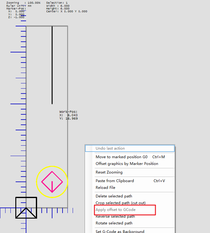 我知道,选中图形,按住鼠标中键移动,“Apply offset to GCode”activate available.如果你可以添加一个输入的X坐标,Y坐标来移动选中的图形,我觉得会更高效 |