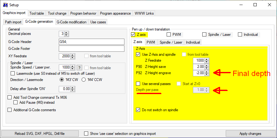 PS 我如何选择切削深度和走刀次数。我想一次切割 2mm 的纸,现在即使我将 Z min 设置为 2,它也以 1.1 深度和两次通过切割。