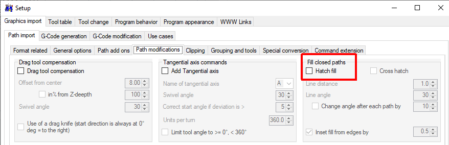 当我尝试通过在窗口中拖动来导入文件时,生成的 gcode 显示每个区域都填充了阴影线。