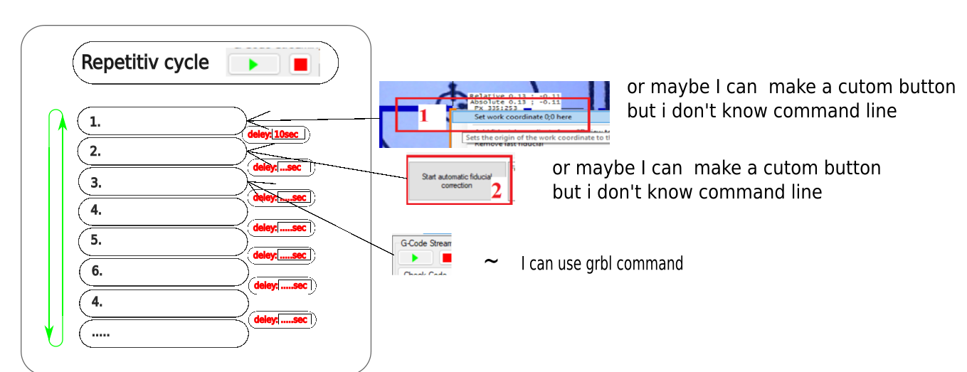 打开 gorgoi 打开了这个问题 1月3日 · 12条评论 打开 连续的、重复的任务,….(我想放传送带和真空台)#319 gorgoi 打开了这个问题 1月3日 · 12条评论 评论 戈尔戈伊 评论了 1月3日 您好,感谢您使用这款 grate 软件! 有什么办法可以实现重复命令? 而不是按按钮在 GCODE 标头或其他地方添加命令: 1.右击鼠标 →在相机上设置工作坐标 2.按 按钮->开始自动基准校正。 3 . 按下按钮 →开始切割 4.重复循环 我的设置,以了解我想做的工作。 ?1个Futurau 反应竖起大拇指表情符号 gorgoi 添加了 增强 标签 1月3日 所有者 svenhb 评论了 1月3日 你的意思是热键功能(用按键代替鼠标点击)? 或者你的意思是宏编程之类的东西? 作者 戈尔戈伊 评论了 1月3日 • 编辑 您好 svenhb,谢谢! 我的意思是像一个函数。只需按开始按钮,然后,连续重复相同的步骤,不按任何东西。 或者类似于自定义按钮的东西: 所有者 svenhb 评论了 上个月 查看新版本:https ://github.com/svenhb/GRBL-Plotter/releases 不幸的是,您需要通过自己的文本编辑器编辑 XML 文件 – 目前… 设置相机工作坐标您只需发送 G 代码“G10 L20 P0 Xxx Yyy” svenhb 添加了 固定 – 需要检查 标签 上个月 作者 戈尔戈伊 评论了 上个月 哇!谢谢!,我会在这个周末测试它并让你知道 作者 戈尔戈伊 评论了 上个月 你好七, 你的工作太棒了,真的令人印象深刻。我做了测试: — example2.xml —-没有基准的例子工作了 2 个小时……,也许更多。极好的! —- example.xml ——在基准点一响,基准点就飞快地传过去,不遵守正常程序。也许这适用于固定相机,但我的床单太大了,我使用 XY 支架。 有什么方法可以调整基准程序之间的时间? 我给它添加了一些视频和日志文件。 ——–基准NOK———— Fiducial_nok.mp4 ——– 基准正常—————- https://user-images.githubusercontent.com/24373830/211160636-bb9d6ad3-7bbf-47bb-a94a-df29447bd607。 mp4 ——– 日志文件—————- Logs.zip 谢谢你! 所有者 svenhb 评论了 上个月 感谢视频,很有帮助! 在第二个 0:39 基准检测开始 – 并在 0:40 完成 – 不正常….(当完全完成时,应该出现响应“完成正常”)。 我在这里做了一个新版本,希望等待检测结束……让我们看看…… 不幸的是我没有硬件可以自己检查…… https://github.com/svenhb/GRBL-绘图仪/blob/master/GRBL-Plotter_1_6_8_1_Setup.exe 作者 戈尔戈伊 评论了 上个月 • 编辑 成功了!谢谢! 唯一的想法是,如果我想停止循环,我必须按 RESET 和 Kill Alarm,然后重新开始,重新打开程序,但这对我来说不是问题。 Fiducials_OK.mp4 所有者 svenhb 评论了 上个月 • 编辑 唯一的想法是,如果我想停止循环…… 您是指“过程自动化”还是“基准检测”周期? 顺便说一句,如果不需要加载不同的设置,你可以禁用用例对话框: 作者 戈尔戈伊 评论了 上个月 感谢您的回复,我的意思是“流程自动化”周期。 感谢您的建议,我没有注意这一点,但它会有所帮助。 所有者 svenhb 评论了 上个月 按“停止”时,当前步骤应该完成,然后自动化停止… 作者 戈尔戈伊 评论了 上个月 嗯……我离开了工作室,明天我会检查并告诉你。谢谢你! 作者 戈尔戈伊 评论了 上个月 • 编辑 你是对的,没关系 我没有耐心完成循环然后它停止了。当我按下停止键时,我预计会立即执行此操作。 更好的做法是在使用周期结束时停止。极好的! 非常感谢,非常感谢重复性的任务。 免费注册 在 GitHub 上加入此对话。已有帐户? 登录评论 受让人 无人分配 标签 增强固定 – 需要检查 项目 还没有 里程碑 没有里程碑 发展 没有分支机构或拉取请求 2名参加者