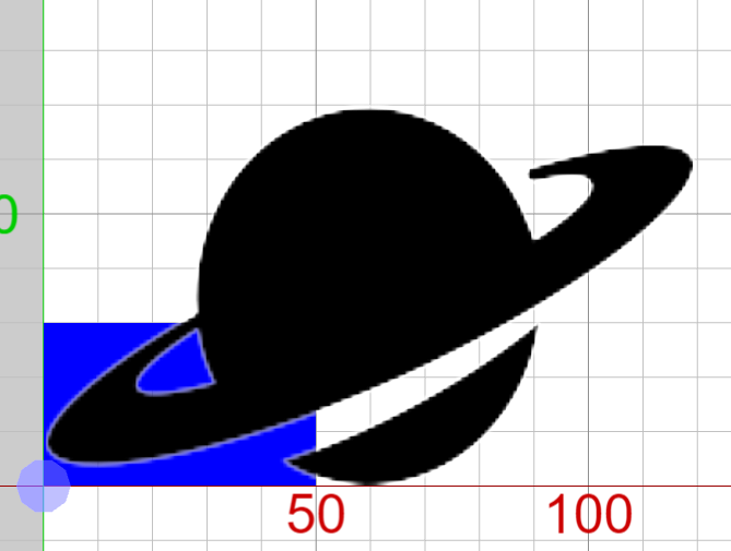 蓝色矩形和土星图像的左下角都位于原点。